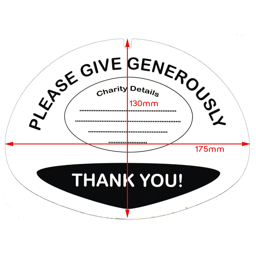 These labels are suitable for use with both our 5 litre and 5.7 litre ranges of charity collection buckets.