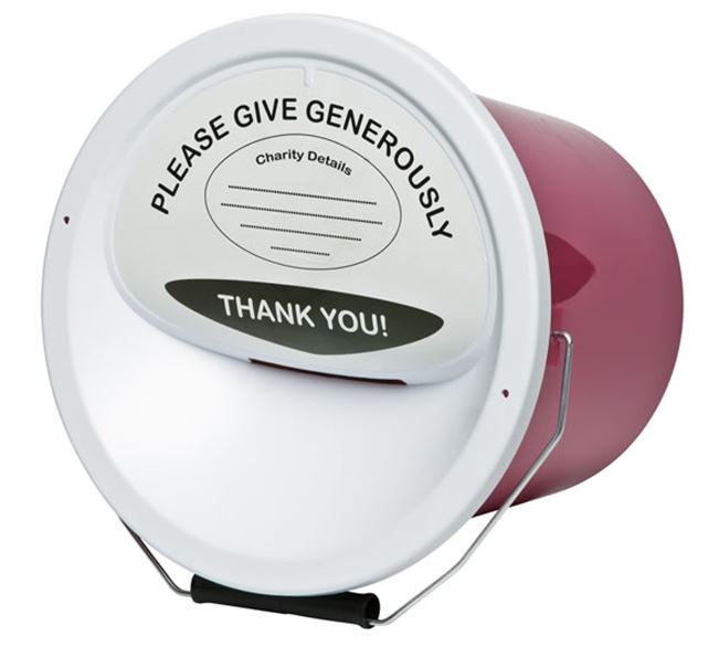 We also sell collection buckets and tins in a variety of colours.