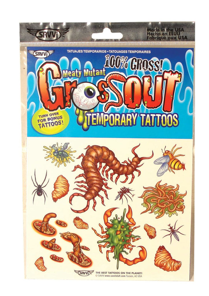 A pack of 12 Gross Out temporary tattoos. These tattoos will help you get your daily dose of gross!