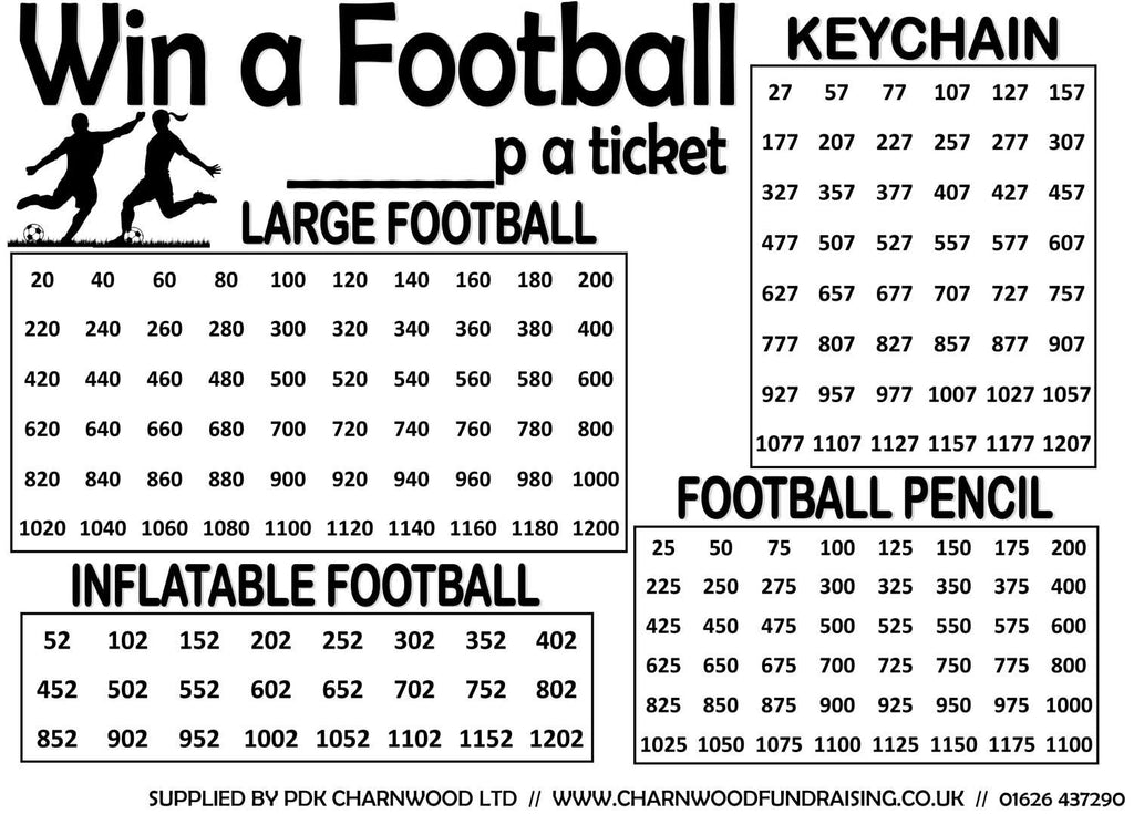 Score a goal with this winning fundraiser! With 156 football themed prizes and a suggested ticket price of only 25p, your customers will hope to score by picking a winning ticket!