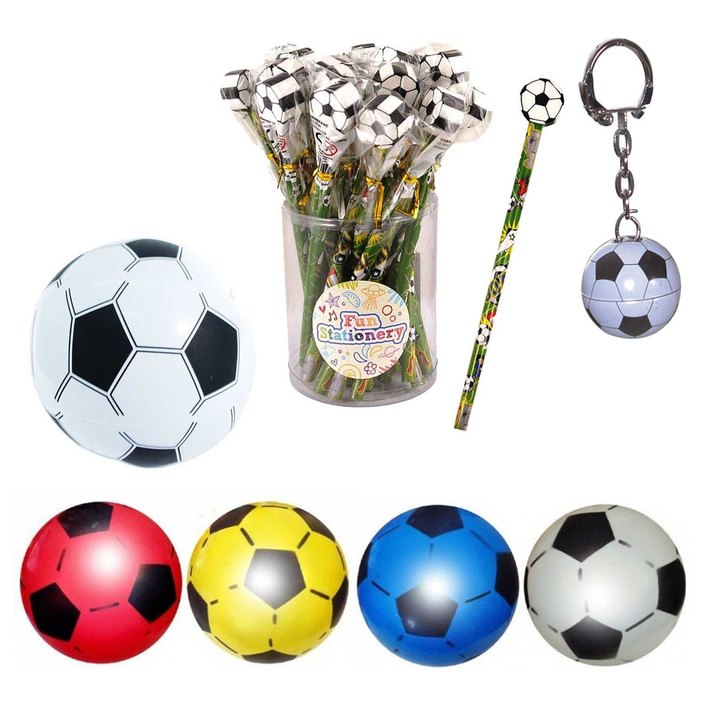 - 30 uninflated plastic footballs in assorted colours (flat packed)