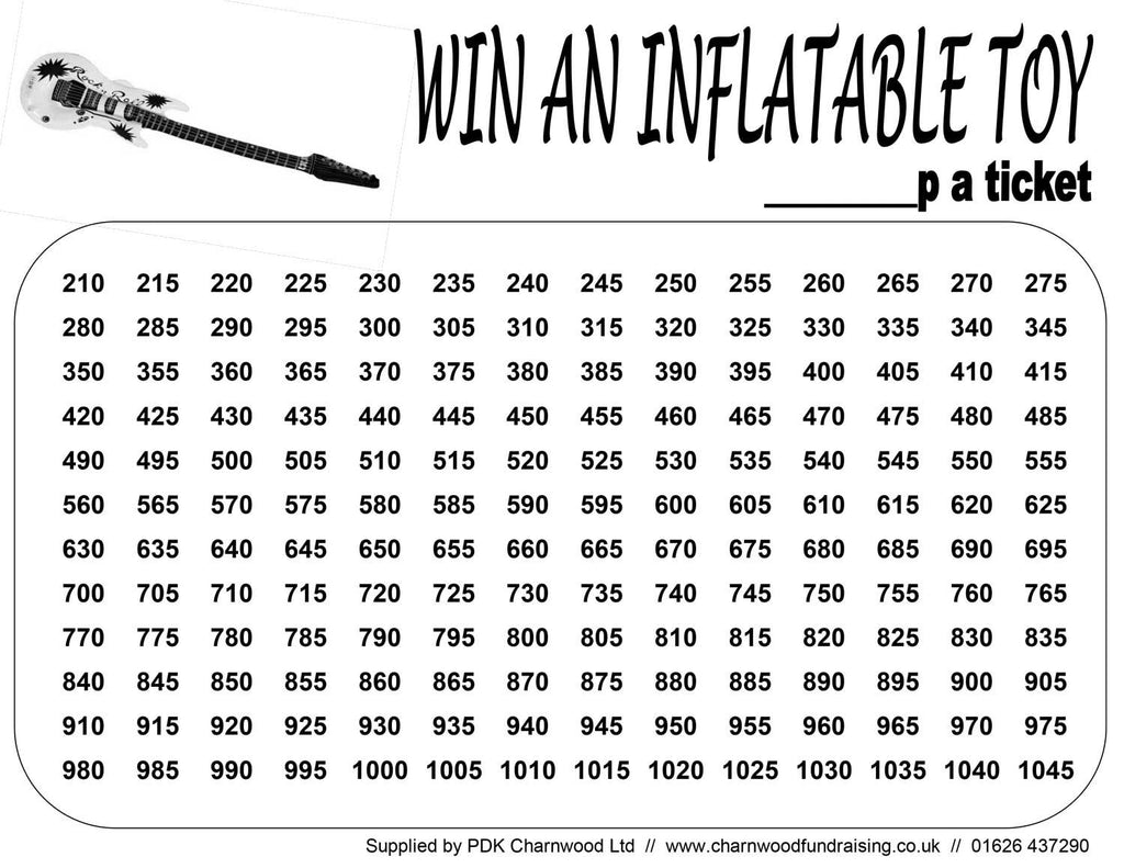 Inflatable toys are a great attraction at any fete or fundraising event. We have put them together in a ready-made tombola game which will appeal to boys and girls of all ages.